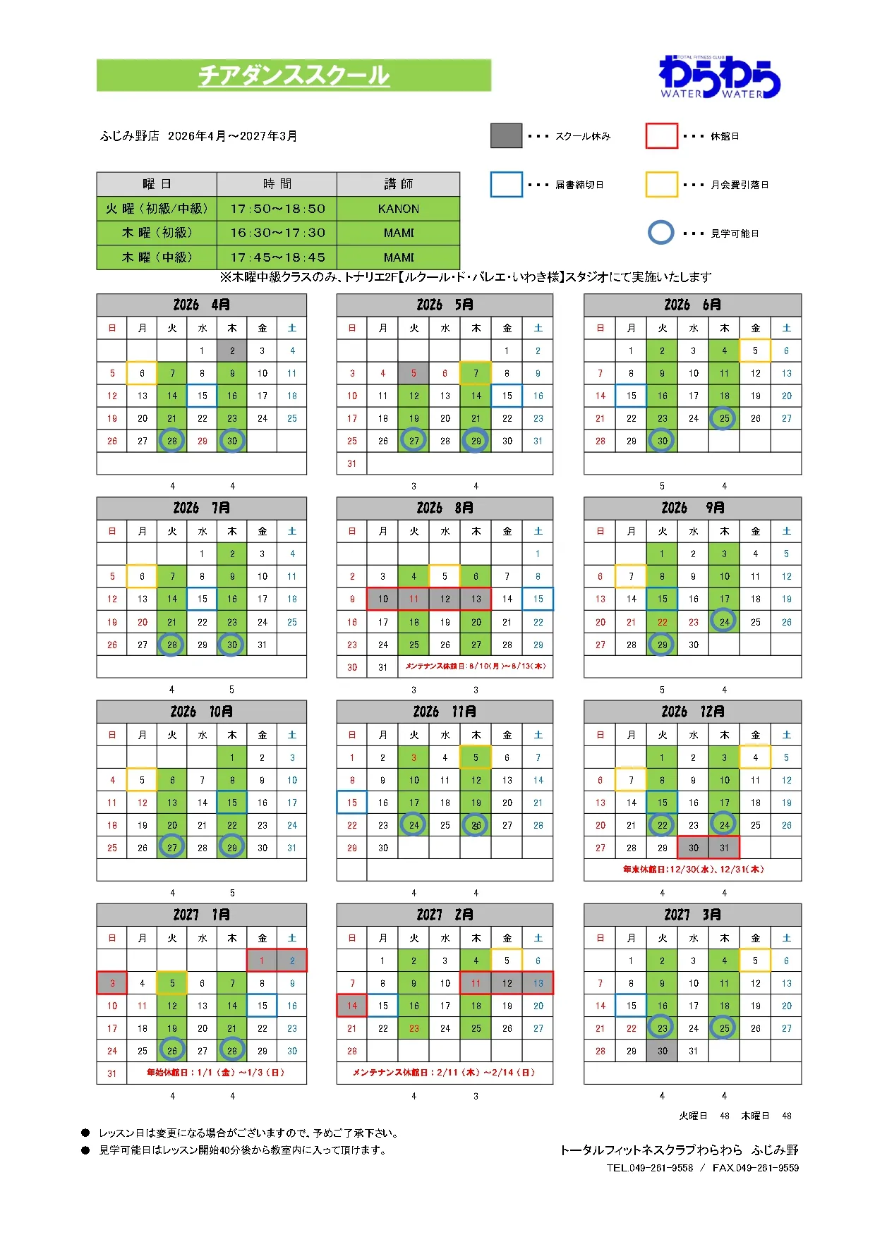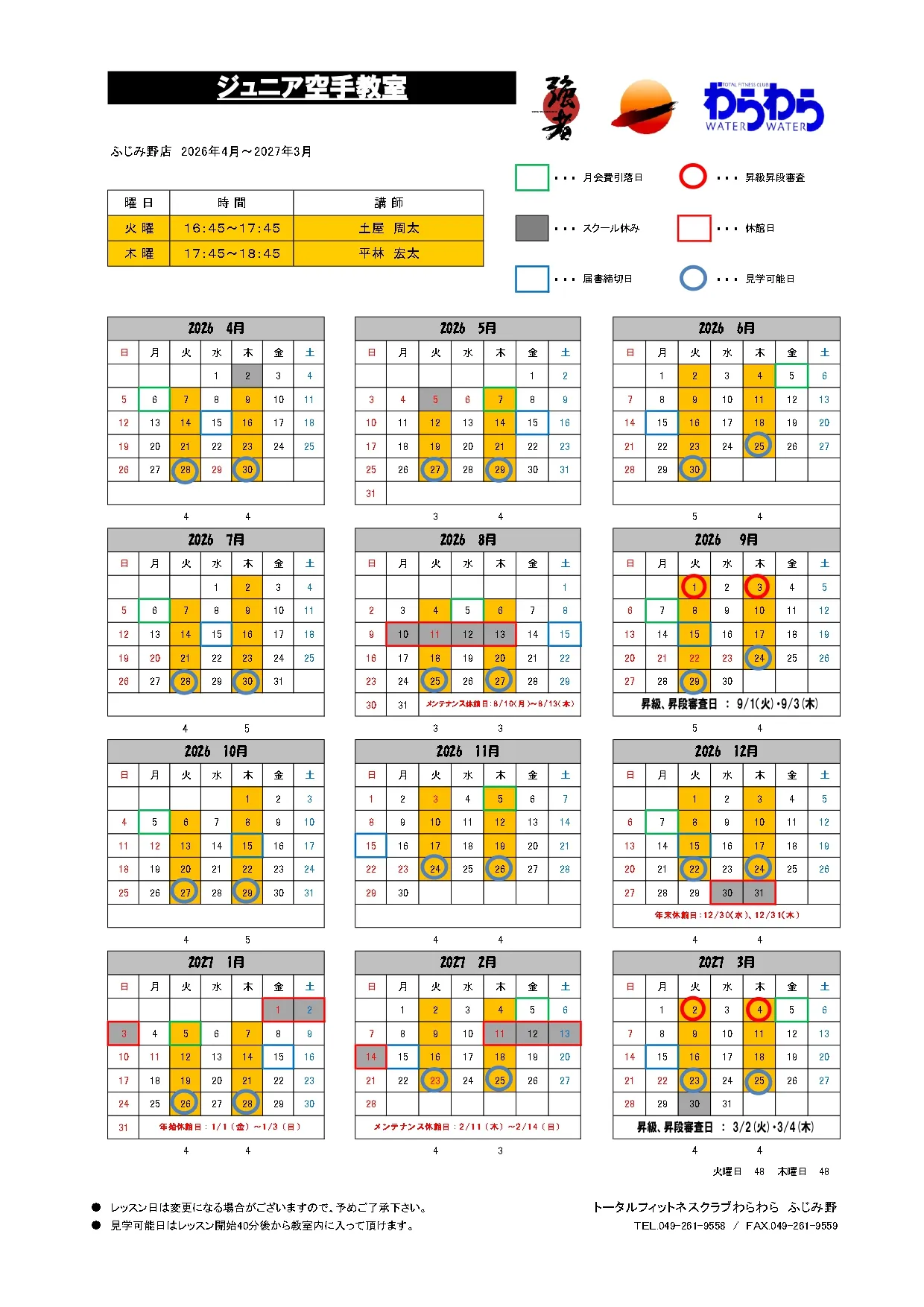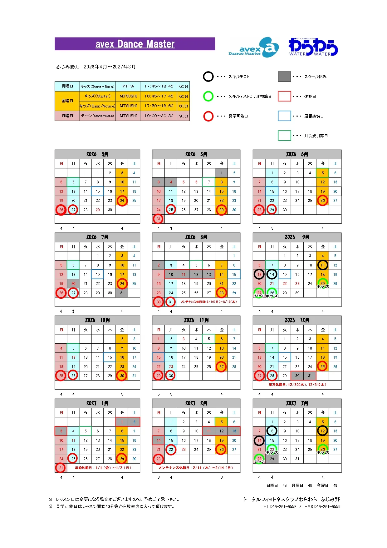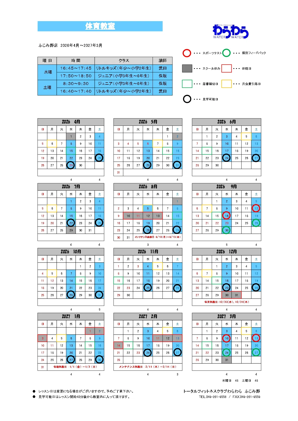 ふじみ野店 スケジュール